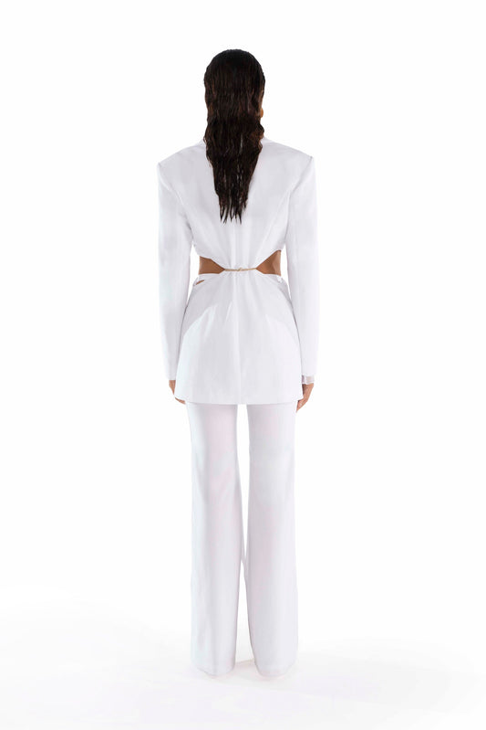 • Ivory Ribbed Knit Ruffle Hem Mini Dress