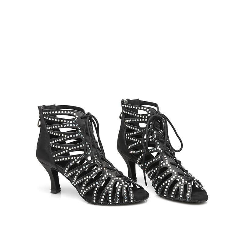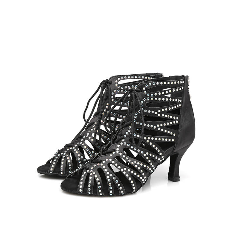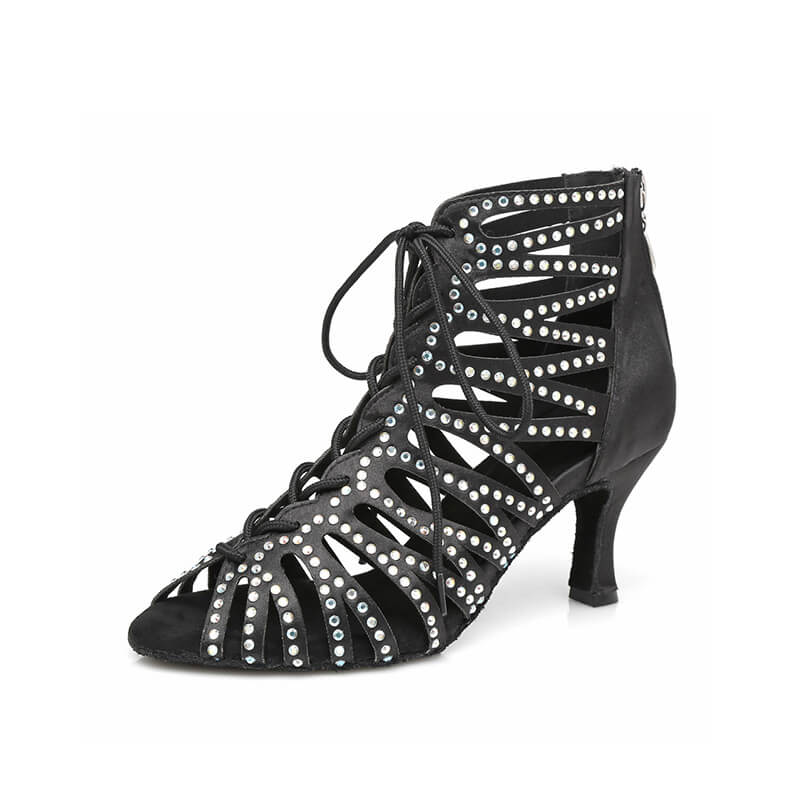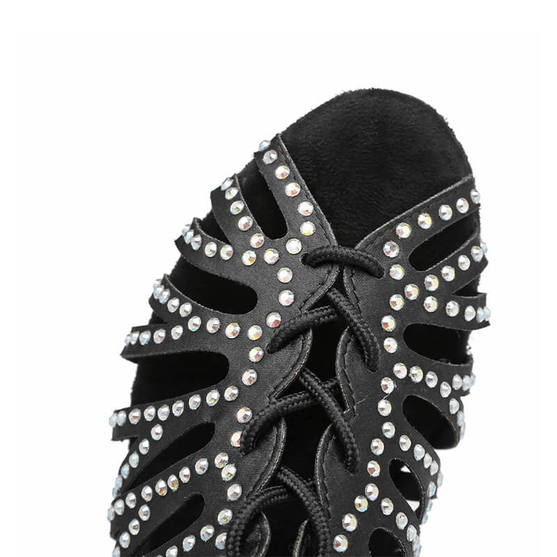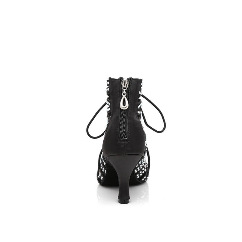 Black Crystal Lace Up Suede Sole Dance Bootie